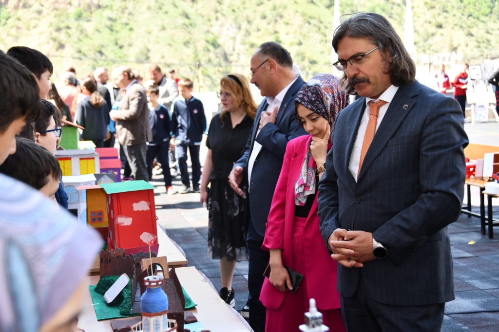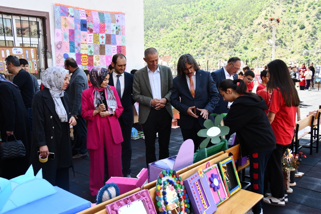Öğrencilerin yıl boyunca hazırladığı resimler, projeler ve el sanatları çalışmaları büyük beğeni topladı. Konuklar, öğrencilerin özgün ve yaratıcı çalışmalarını tek tek inceleyerek tebrik etti.